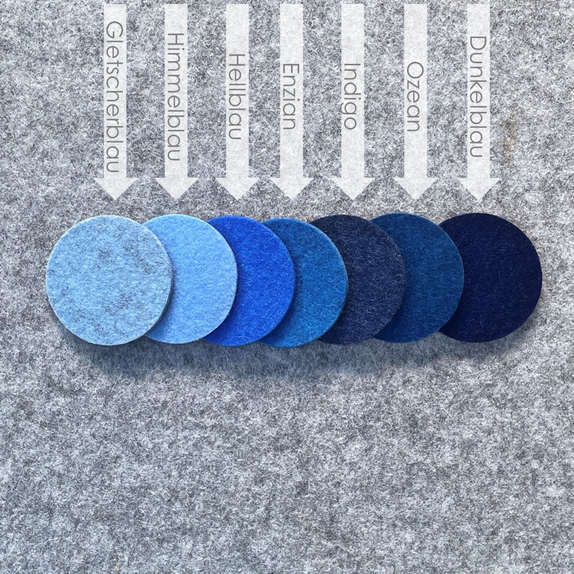 Filz ist ein Naturprodukt. Entsprechend nimmt der Filz die Färbung unterschiedlich auf. Es können daher geringfügige Abweichungen zwischen den einzeln produzierten Chargen auftreten. Dies ist kein Reklamationsgrund, sondern unterstreicht die natürlichen Eigenschaften vom Filz.