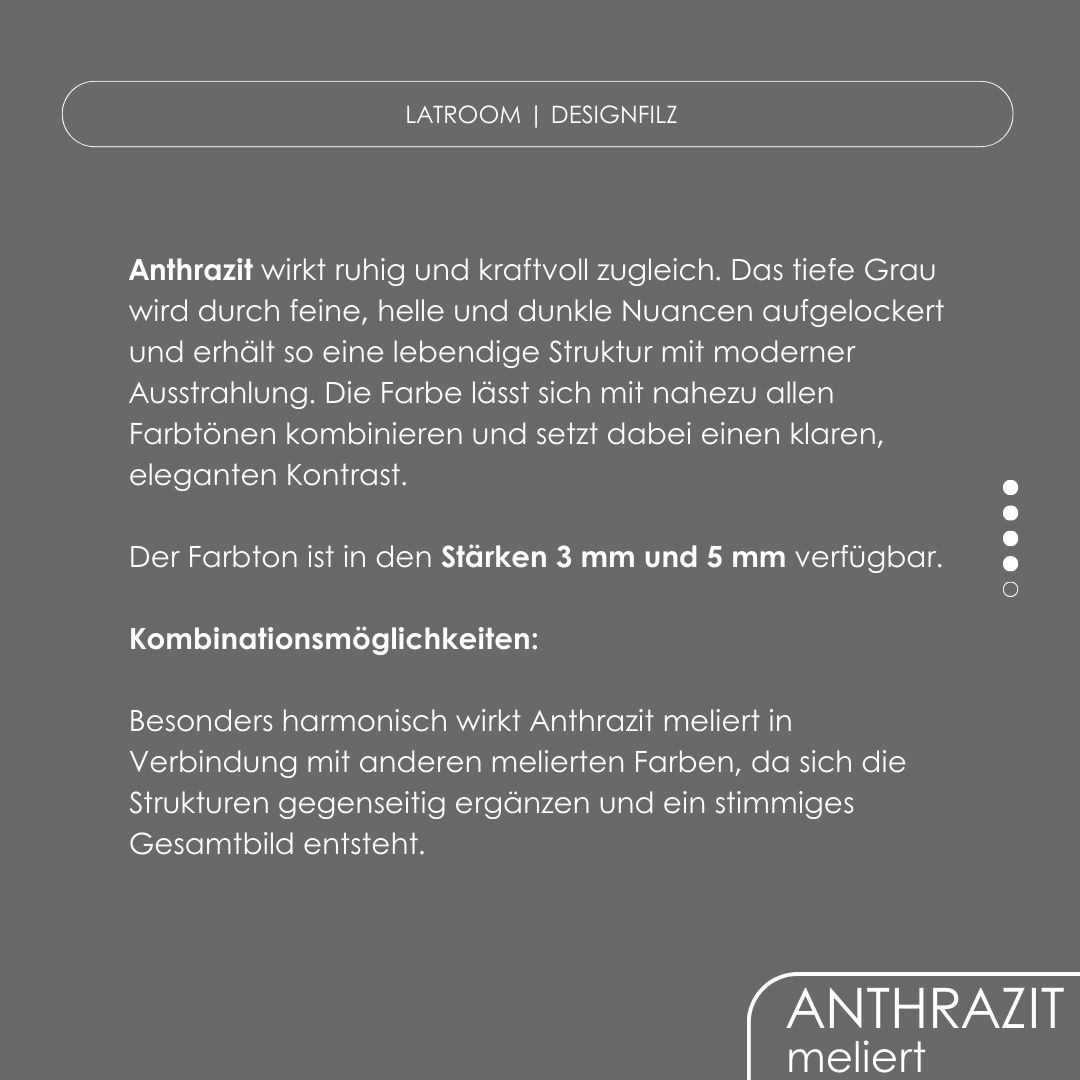 Die Farben können aus technischen Gründen leider nur annährend dargestellt werden. Wir beziehen unseren Filz direkt von einem namhaften deutschen Hersteller und bieten ausschließlich Designfilz aus 100 % Wolle (Schurwolle - Merino) an. Da es sich um ein Naturprodukt handelt, können zwischen den einzelnen Chargen leichte Farbunterschiede bestehen. Dieser Unterschied entsteht, da nicht immer das gleiche Schaaf die Wolle liefert. Daher ist dies kein Reklamationsgrund, sondern unterstreicht die Eigenschaft dieses Naturproduktes.