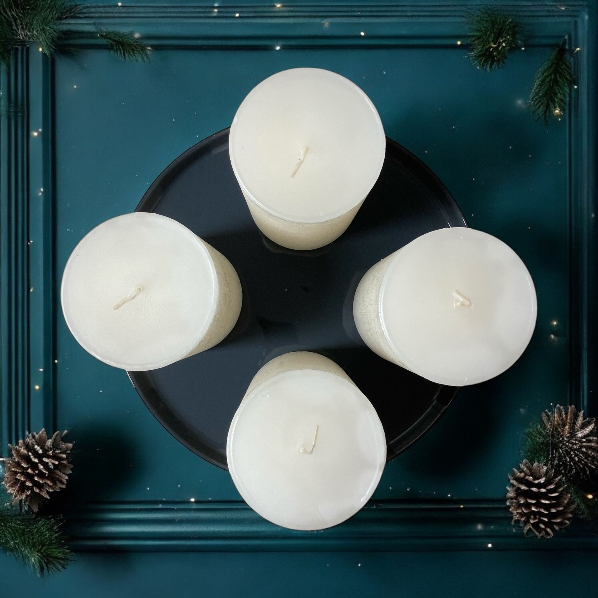 Angebot 4 Kerzen mit einem Kerzenteller