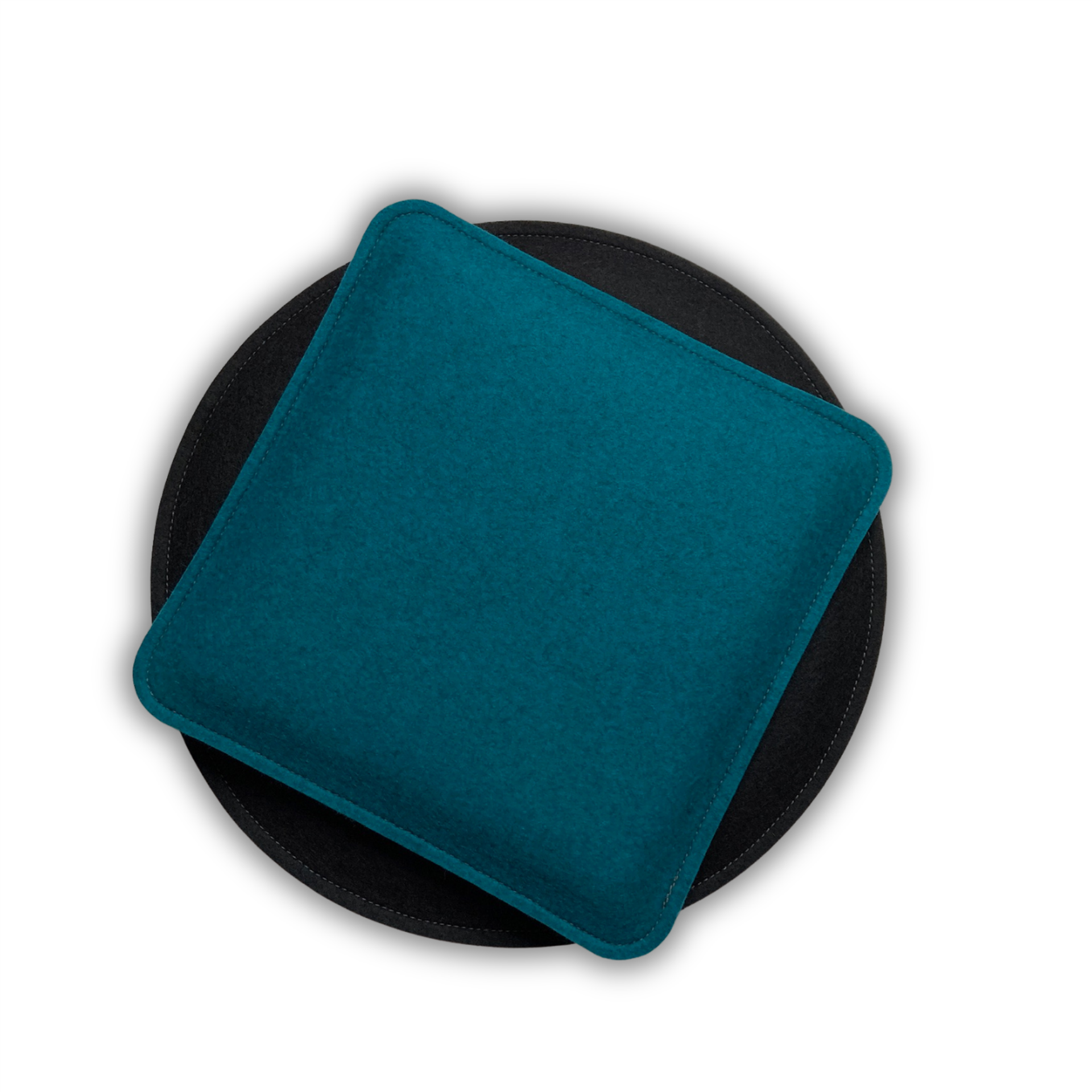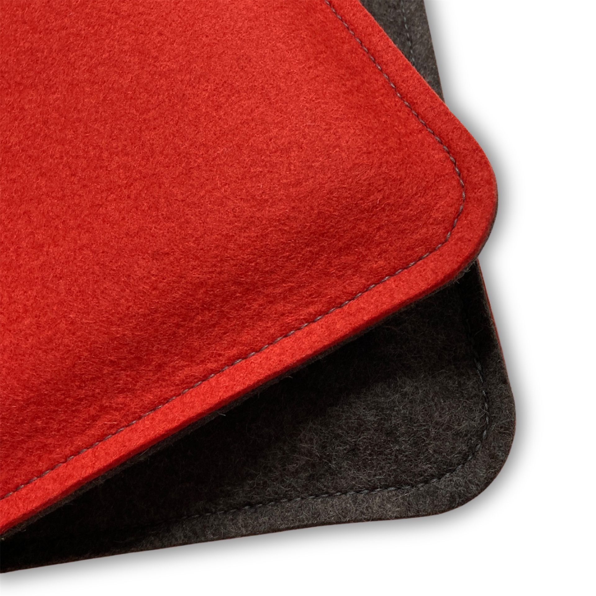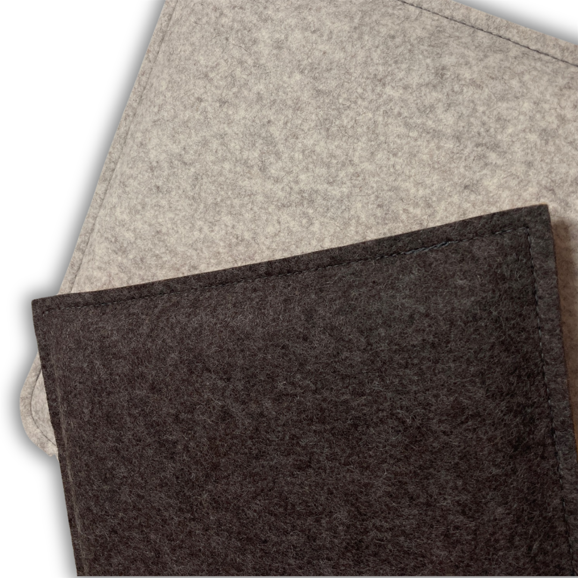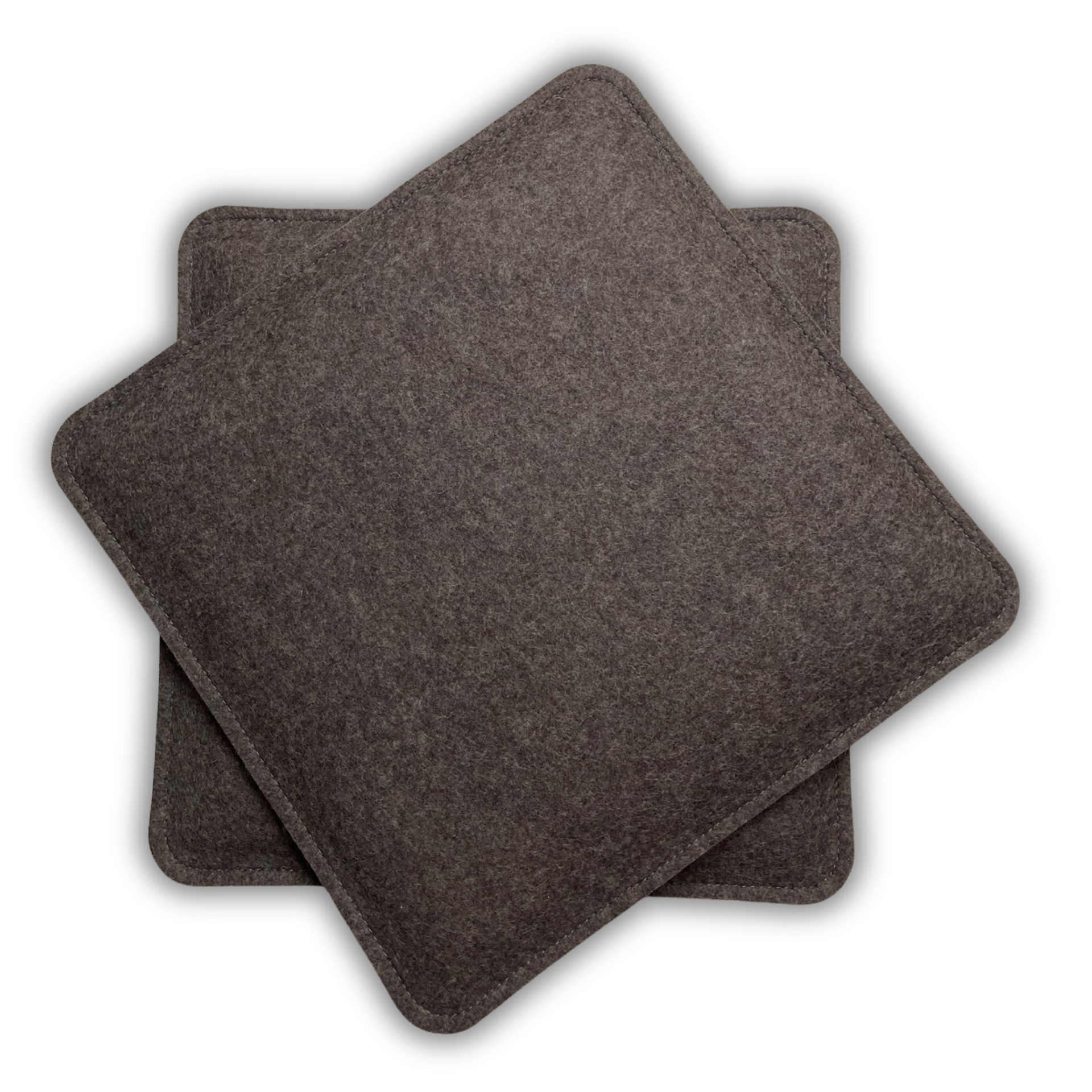 Wir beziehen den Filz seit Jahrzehnten von einem namhaften deutschen Hersteller. Der Filz besteht aus 100% Wolle (Merino - Schurwolle) in einer Materialstärke von 3 mm. Zwischen dem Filz wird als Polsterung ein 2 cm dicker Premiumschaumstoff vernäht.