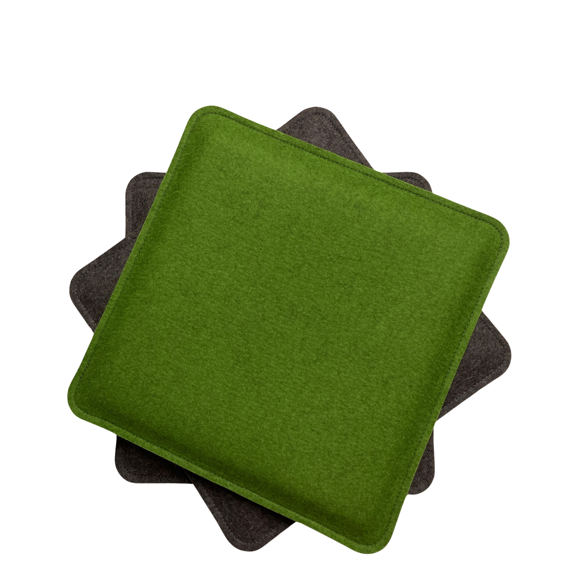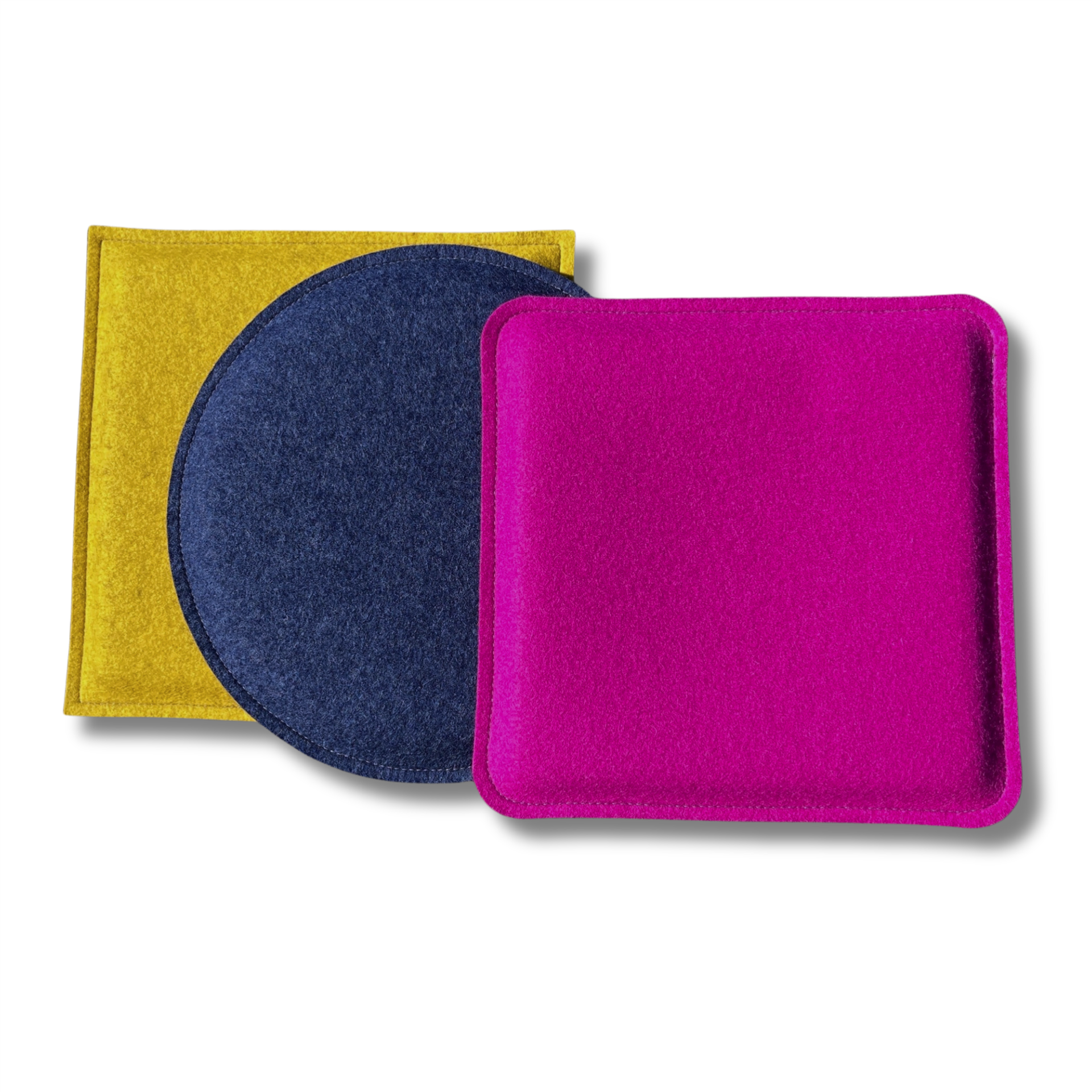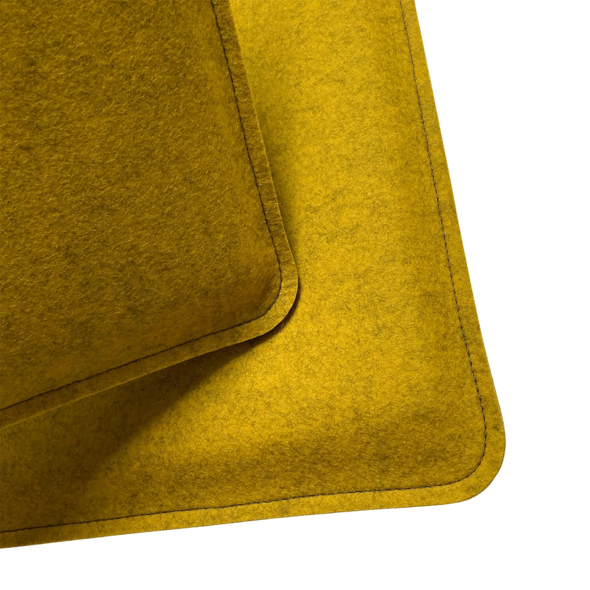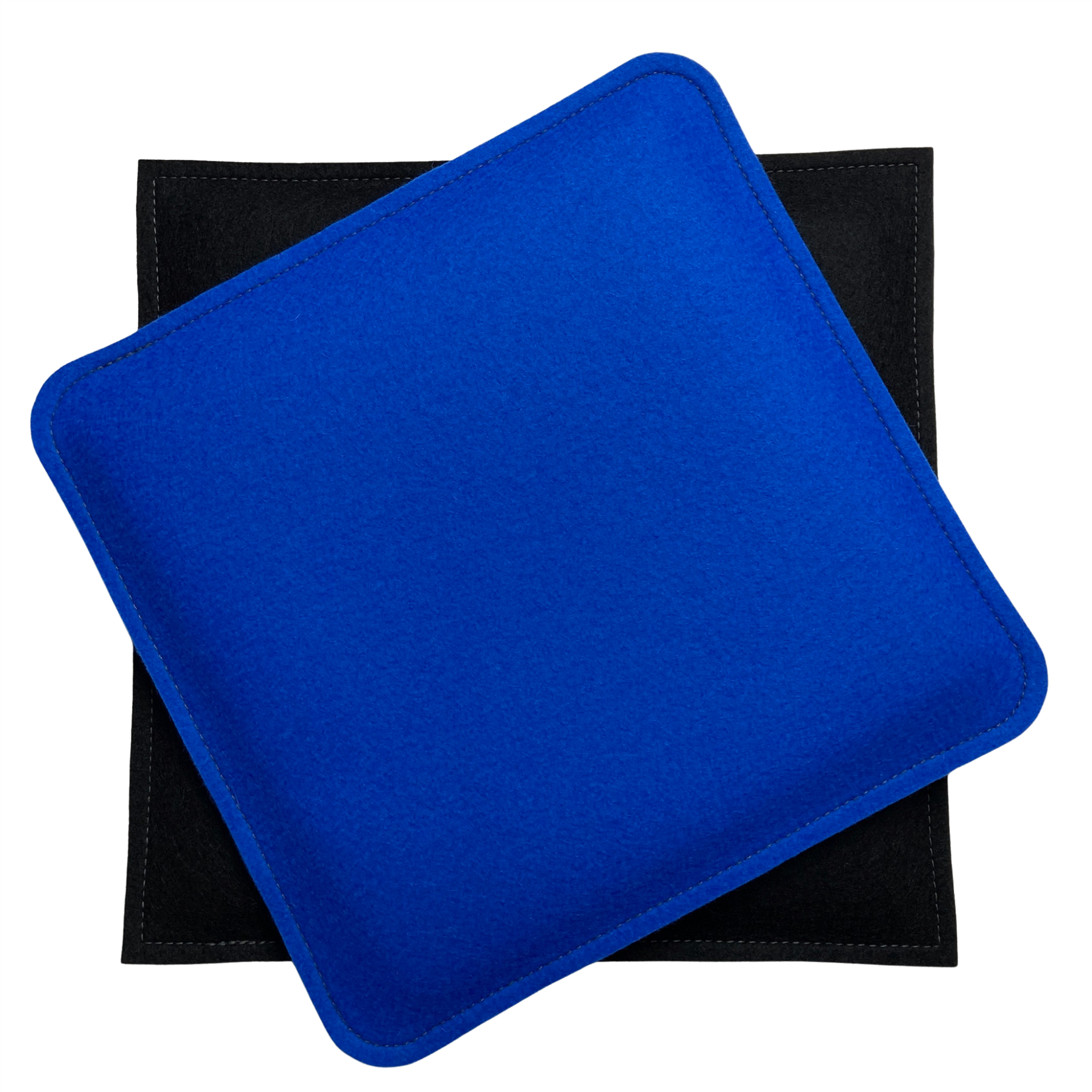 Wir beziehen den Filz seit Jahrzehnten von einem namhaften deutschen Hersteller. Der Filz besteht aus 100% Wolle (Merino - Schurwolle) in einer Materialstärke von 3 mm. Zwischen dem Filz wird als Polsterung ein 2 cm dicker Premiumschaumstoff vernäht.