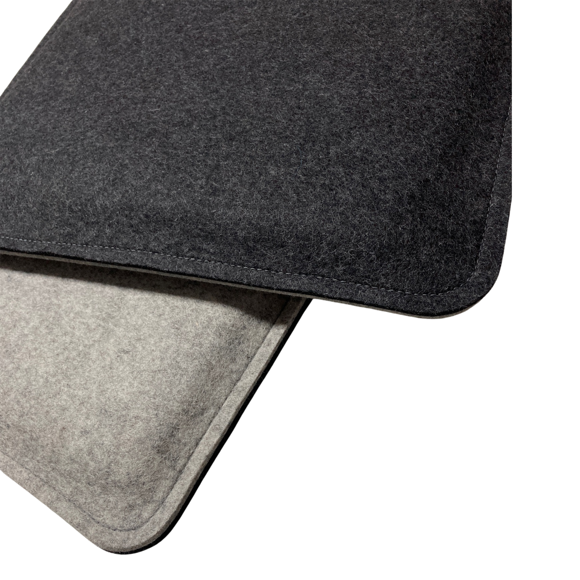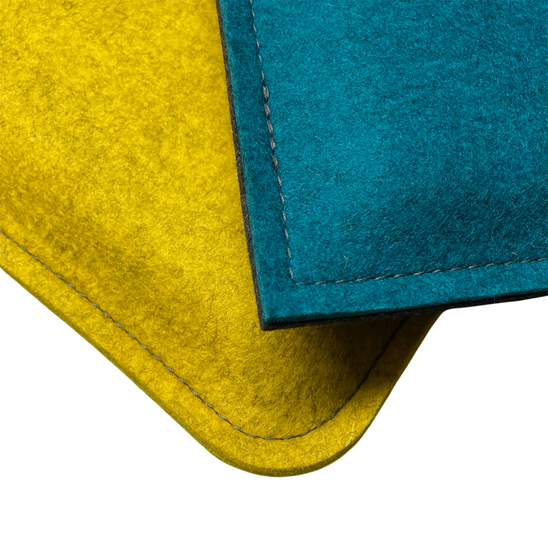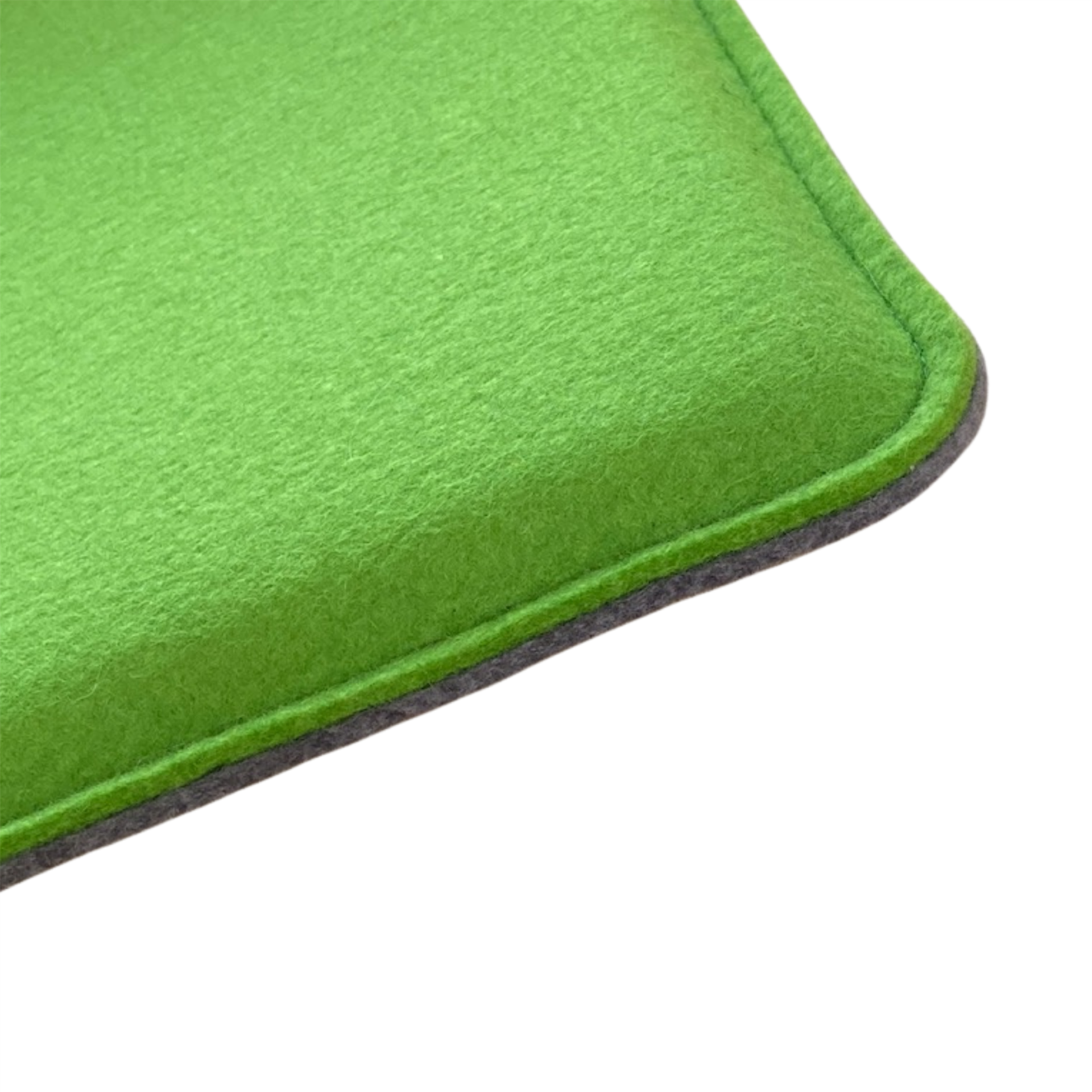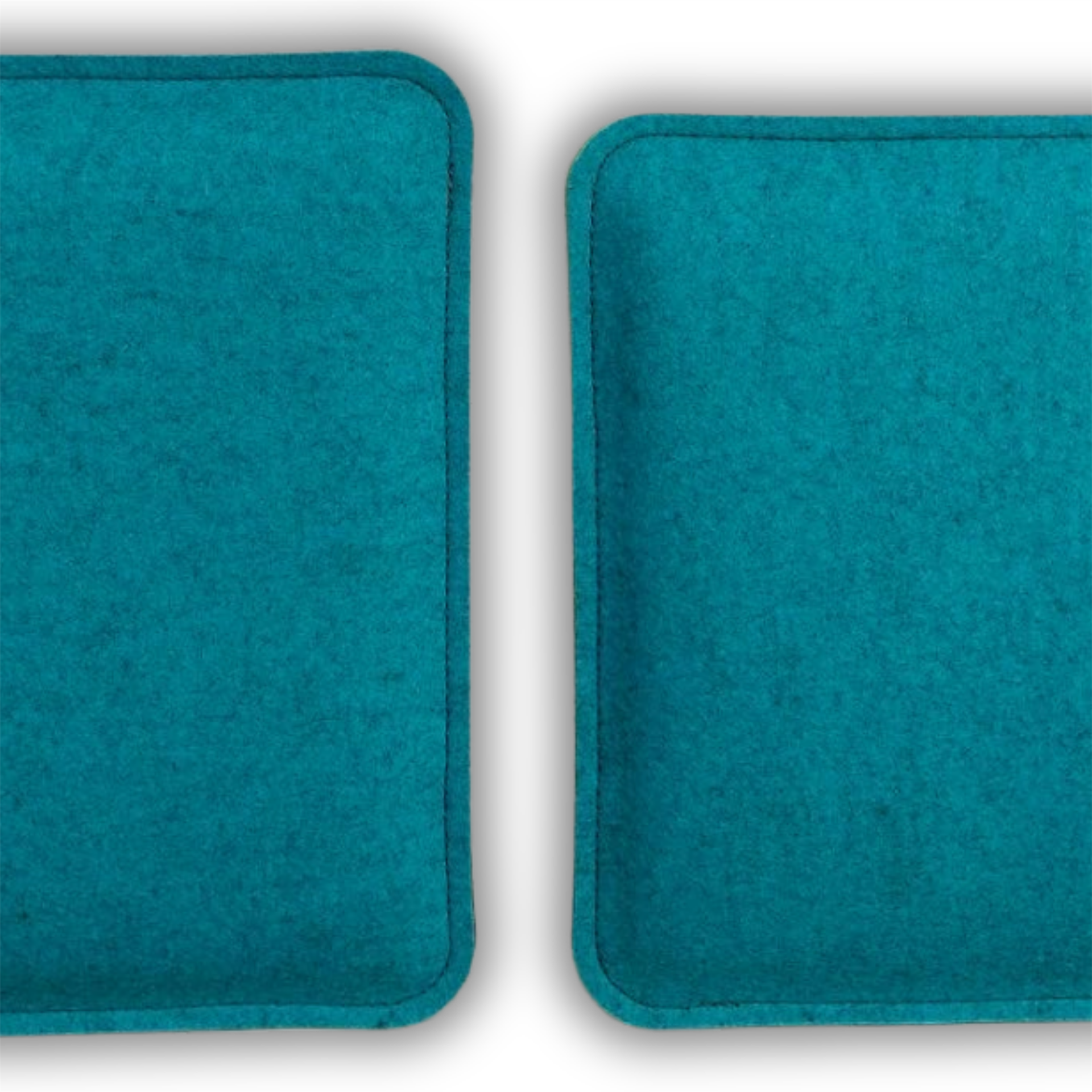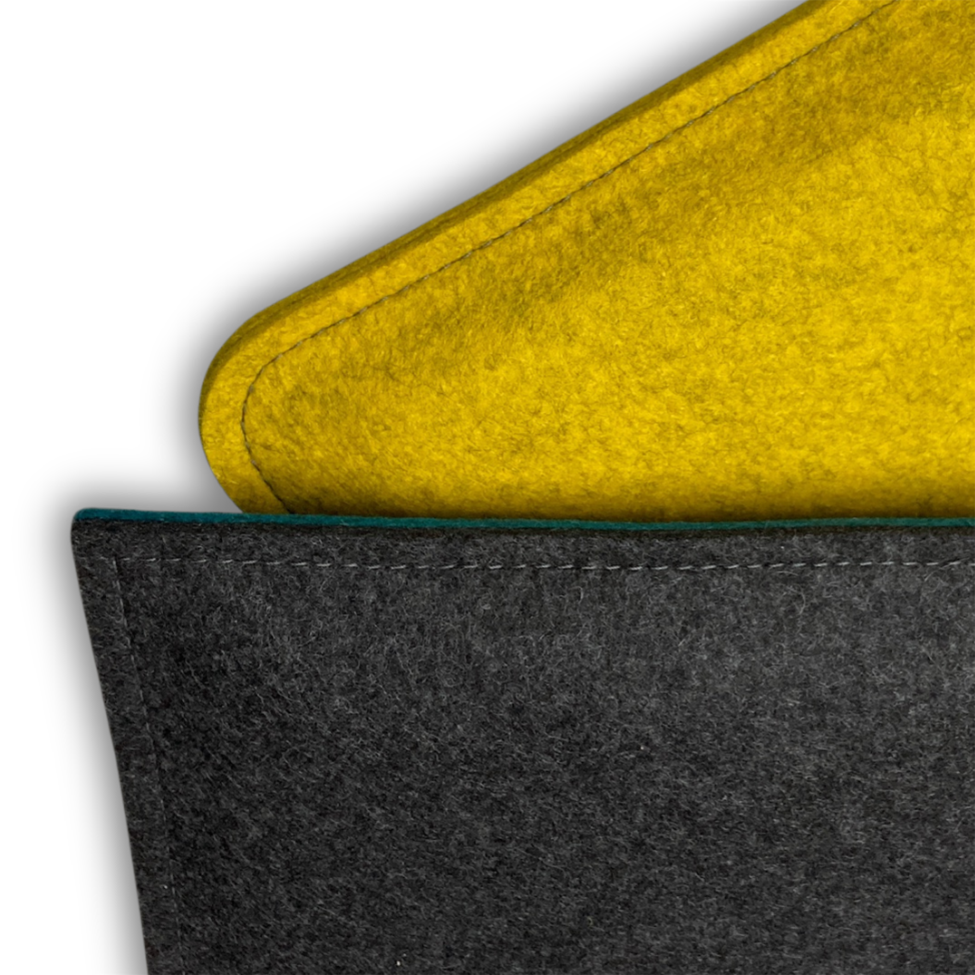Wir beziehen den Filz seit Jahrzehnten von einem namhaften deutschen Hersteller. Der Filz besteht aus 100% Wolle (Merino - Schurwolle) in einer Materialstärke von 3 mm. Zwischen dem Filz wird als Polsterung ein 2 cm dicker Premiumschaumstoff vernäht.