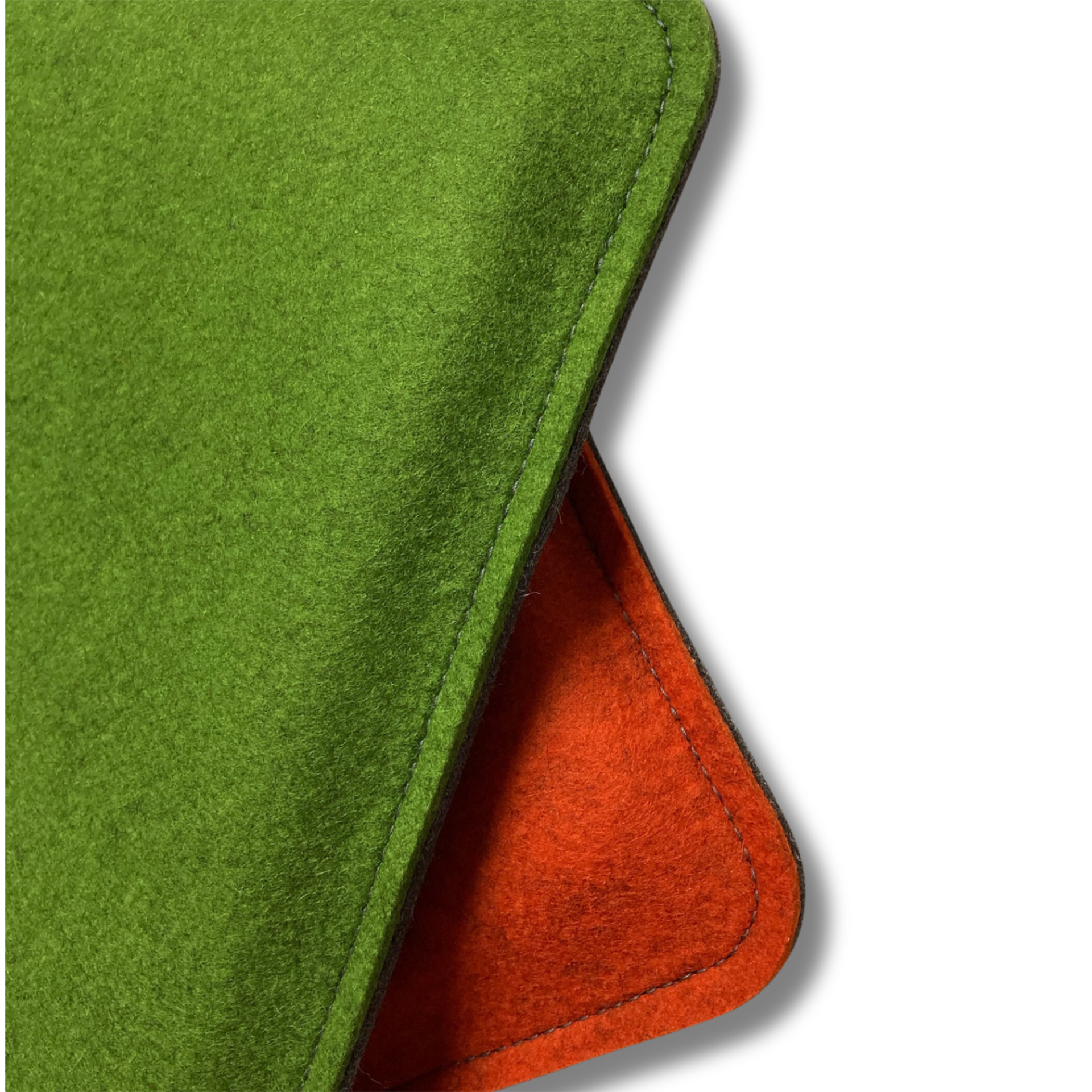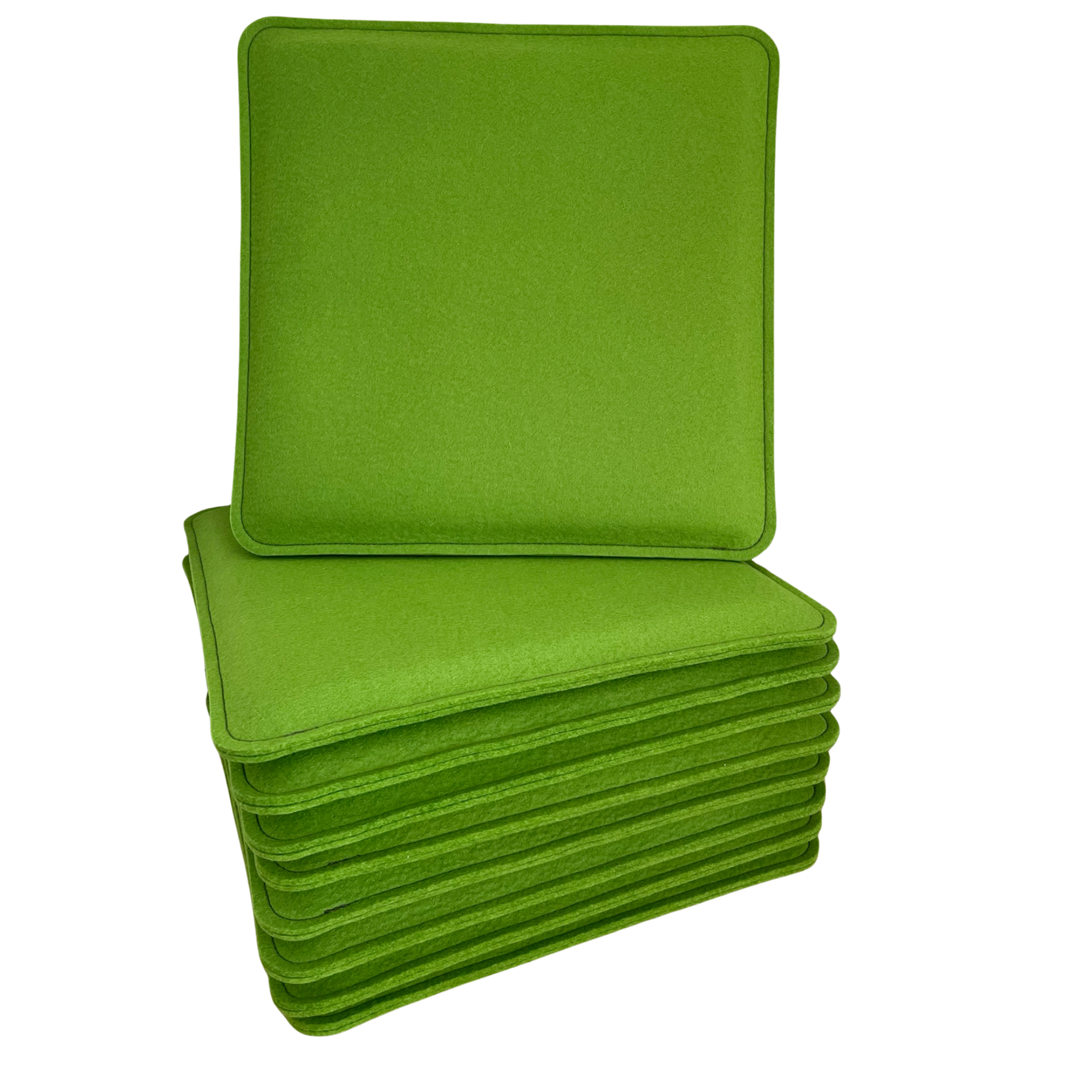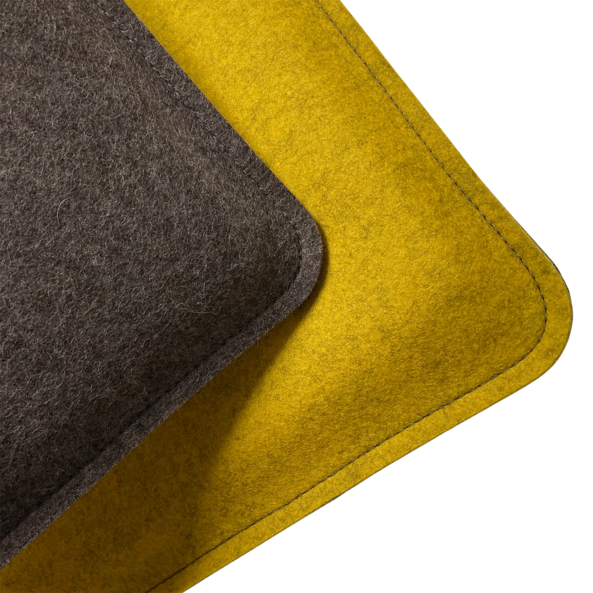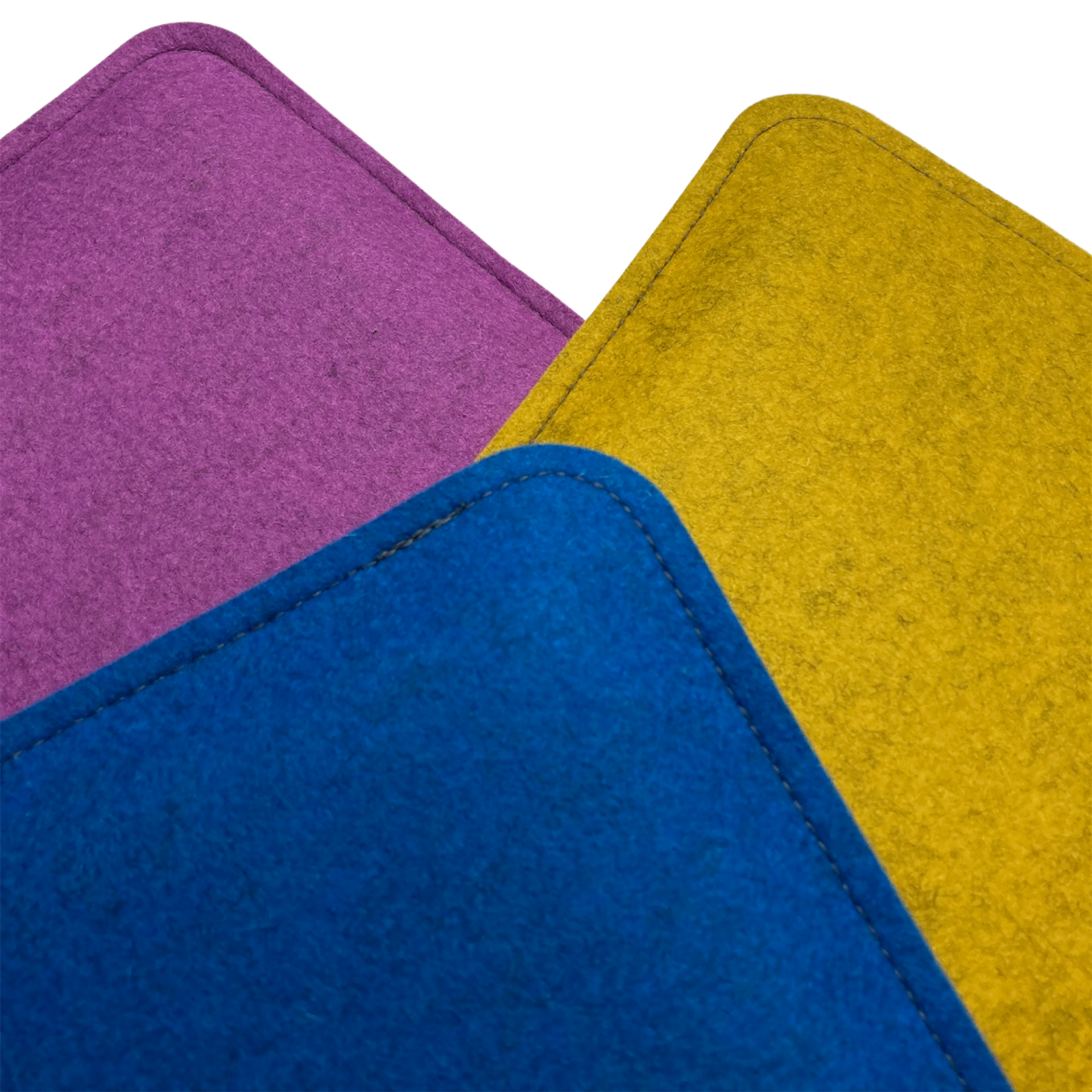 Wir beziehen den Filz seit Jahrzehnten von einem namhaften deutschen Hersteller. Der Filz besteht aus 100% Wolle (Merino - Schurwolle) in einer Materialstärke von 3 mm. Zwischen dem Filz wird als Polsterung ein 2 cm dicker Premiumschaumstoff vernäht.