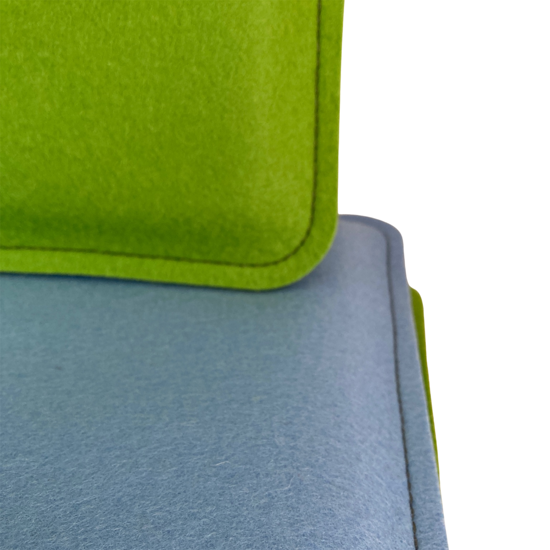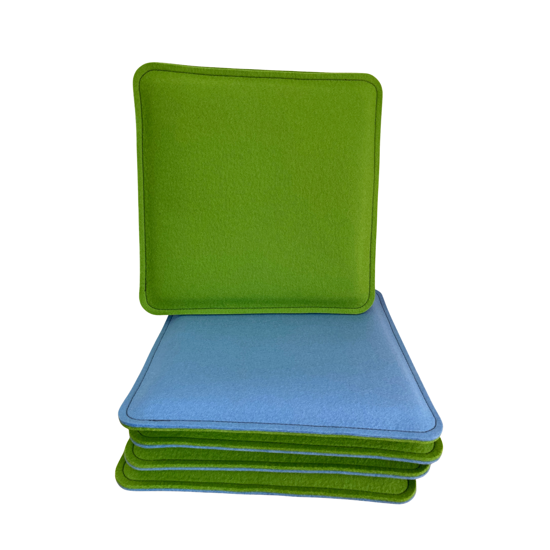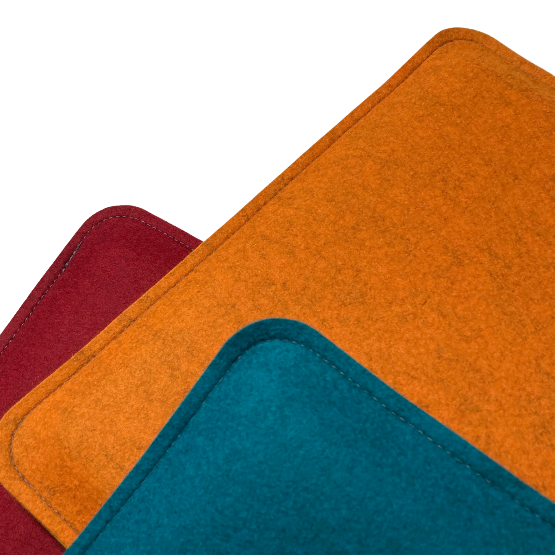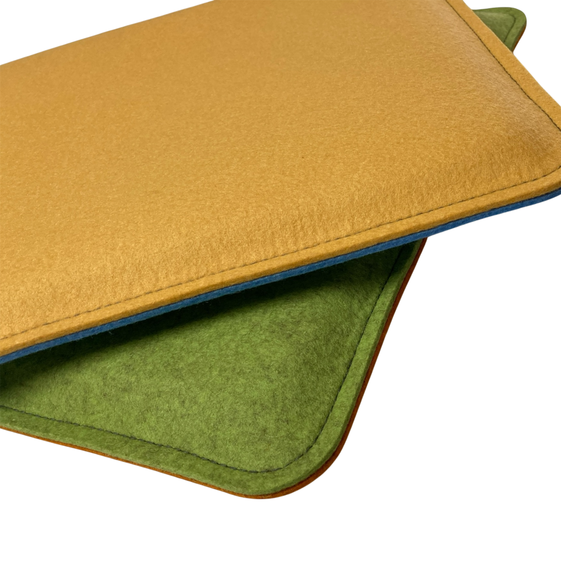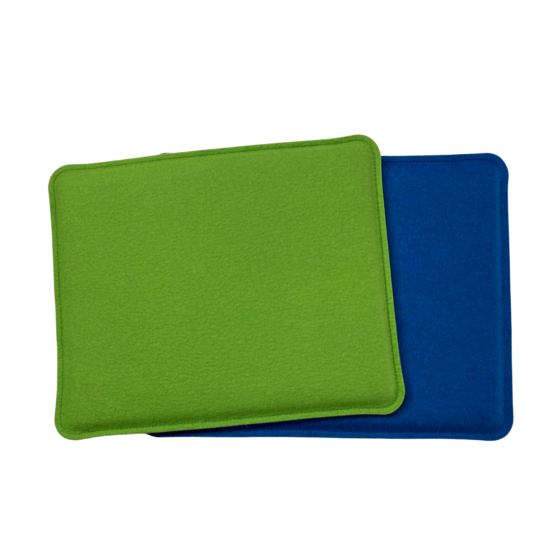 Wir beziehen den Filz seit Jahrzehnten von einem namhaften deutschen Hersteller. Der Filz besteht aus 100% Wolle (Merino - Schurwolle) in einer Materialstärke von 3 mm. Zwischen dem Filz wird als Polsterung ein 2 cm dicker Premiumschaumstoff vernäht.